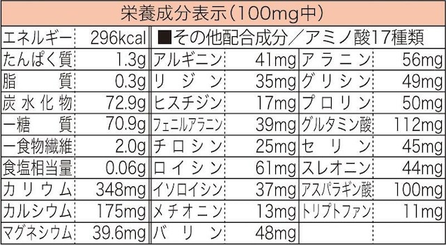 糖類(オリゴ糖、黒糖、ショ糖) その他(貝カルシウム、酵素水飴)