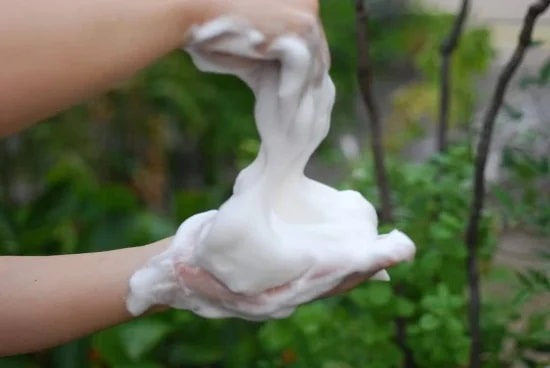 よく泡立てて空気を抜いたたっぷりの泡で自然の香りをお楽しみください。